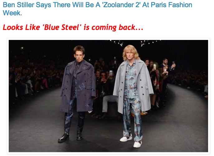FashionfilmMovieszoolander 'Zoolander 2' coming 2016. by Nubia Mejia - 3:05 AM Check out my pop culture website PopGoesTheNubia.com to read a bit about the exciting news Derek Zoolander and Hansel told the world on the Maison Valentino runway show at Paris Fashion Week. Click HERE for more. Xo Nubia Xo Share Tweet Pin Share Tags : Fashion, film, Movies, zoolander Newer Post Older Post You May Also Like 0 comments