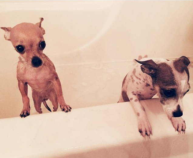 Bambi is the brown one and Nala is the white one with brown spots all over the place. I'd like to think I rescued Bambi in a way because I purchased her from a lady in Dominican Republic for $50 bucks who needed to get rid of some dogs. Dominican Republic has SO MANY abandoned dogs on the streets, it' heartbreaking. I was looking for a Chihuahua at the time and I felt like I could give her an amazing home. I got all her shots done and flew her back to NY with me. I purchased Nala from a couple in Las Vegas who also couldn't keep her. She is a Chihuahua mixed with a Jack Russell Terrier which is why she is CRAZY energetic. I love having them together because Nala pushes Bambi to be more active and exercise. Bambi is a little over 5 years and Nala is a little over 1 year old.