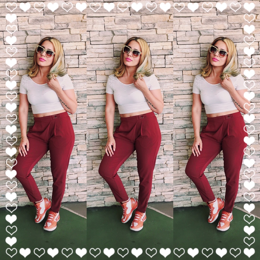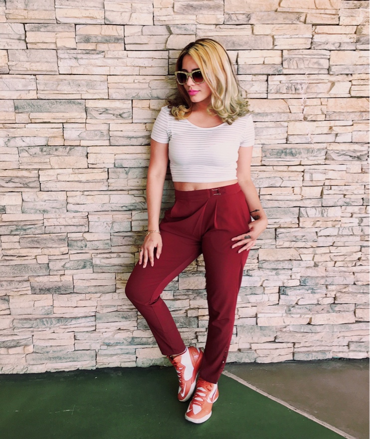 I had these cute pair of slacks I picked up from Patty's Closet and they're a great item you can dress up or down. I decided to dress them down a bit with a pair of brown Nike Hyperdunks and a cute crop top from H&M.