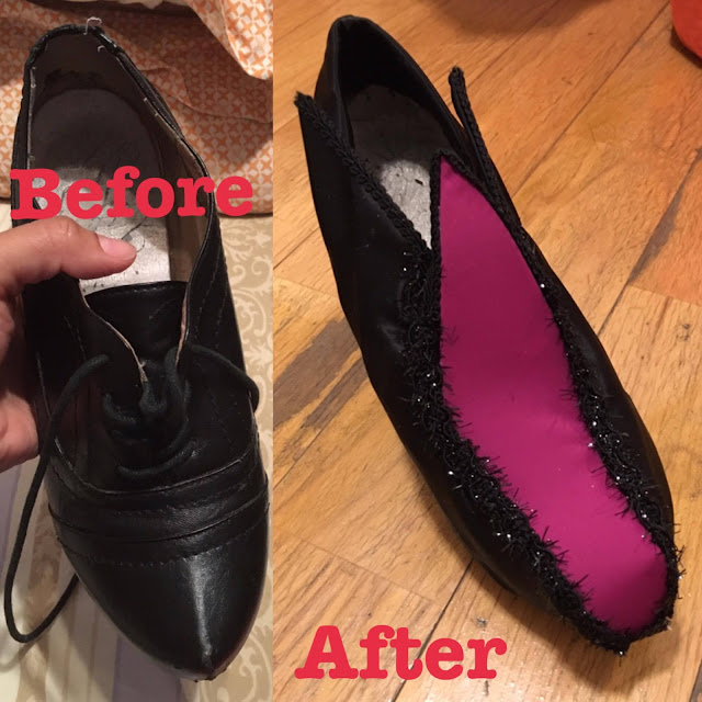 Kaori also asked me if I had an old pair of shoes I was ready to throw out that would match the height of my Wonder Woman heels for the Two Face side. See the before and after transformation she did below. There is so much detail that went into this New York Comic Con cosplay that I don't think this blog post even does it justice.