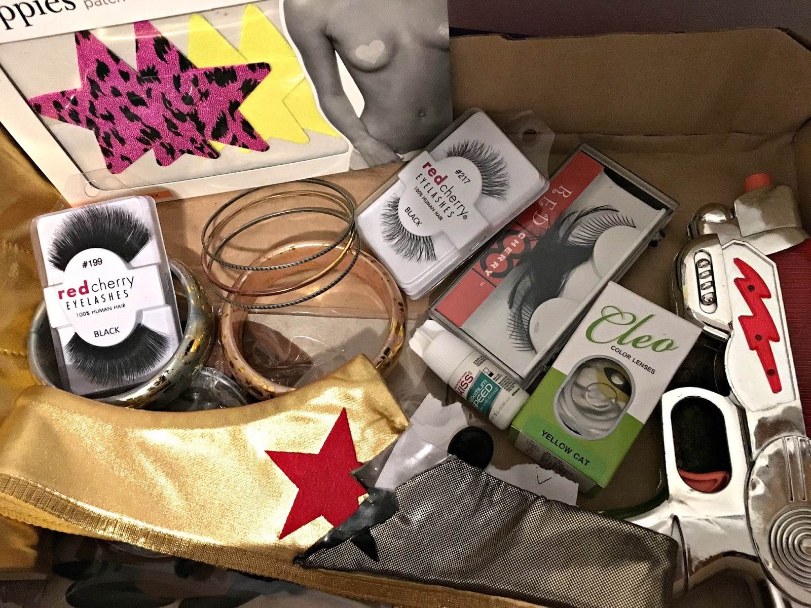 Below are a few of the items we used to make the costume look prettier and scarier. Crazy contacts for the Two Face side, eye lashes, the cracked wonder woman crown Kaori altered, bracelets, and nipple stickers to avoid tragic accidents (No Janet Jackson nip-slips here). I made the Two Face double headed coin (his lucky charm/decision maker he took from Maroni) that can be seen in almost all of the photos. We tried to look for a regular coin but it seemed too small. I printed 2 head sides of a coin on a sheet of paper and cut them out. I then proceeded to pasting it on a piece of cardboard I cut to be the same size to make it sturdy. After that I drew in the scratches on one side to represent the scarred side of the coin. It was cooler this way because I was able to exaggerate the side of the coin.