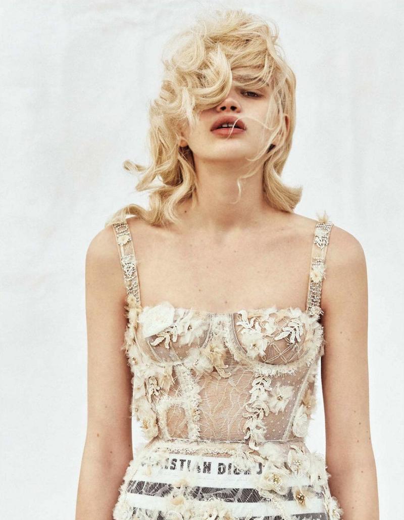 This editorial displays a freeing element when it comes to wardrobe and beauty. Long laced dresses with a loose silhouette, curly hair easily swayed by the wind, and neutral makeup that blends well with nature... dreamy.