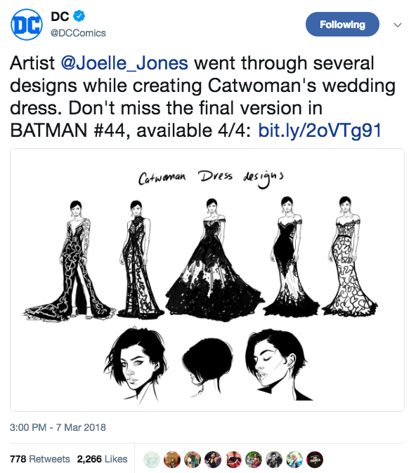 On twitter, DC Comics also shared Joelle Jones' design process, which I thought was super insightful and inspiring as someone who loves fashion and is currently engaged.