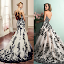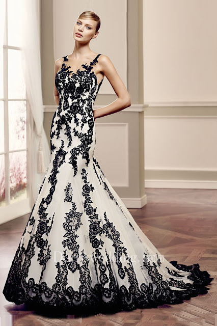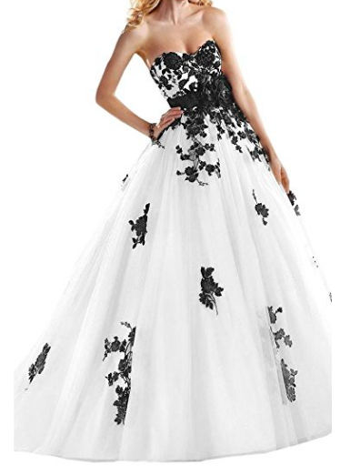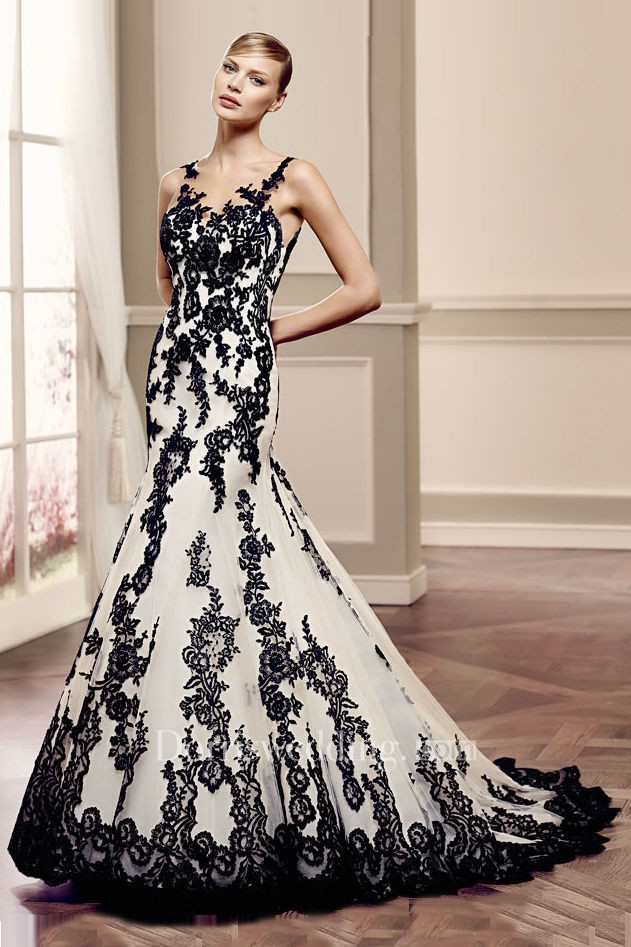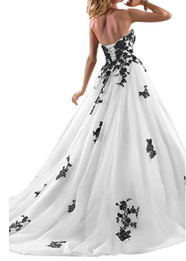 "Laces Appliques Black and White Wedding Dress Long Bridal."