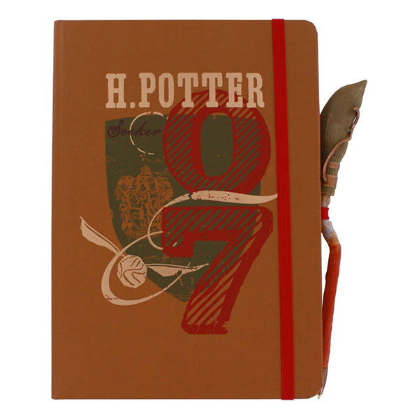 "Broomsticks aren't just for riding... they're also for writing! Or at least, this one is. This hardcover journal comes with a pen modeled after Harry Potter's Firebolt broomstick. We figure if magic can make brooms fly, it can make them do other things too, right?"