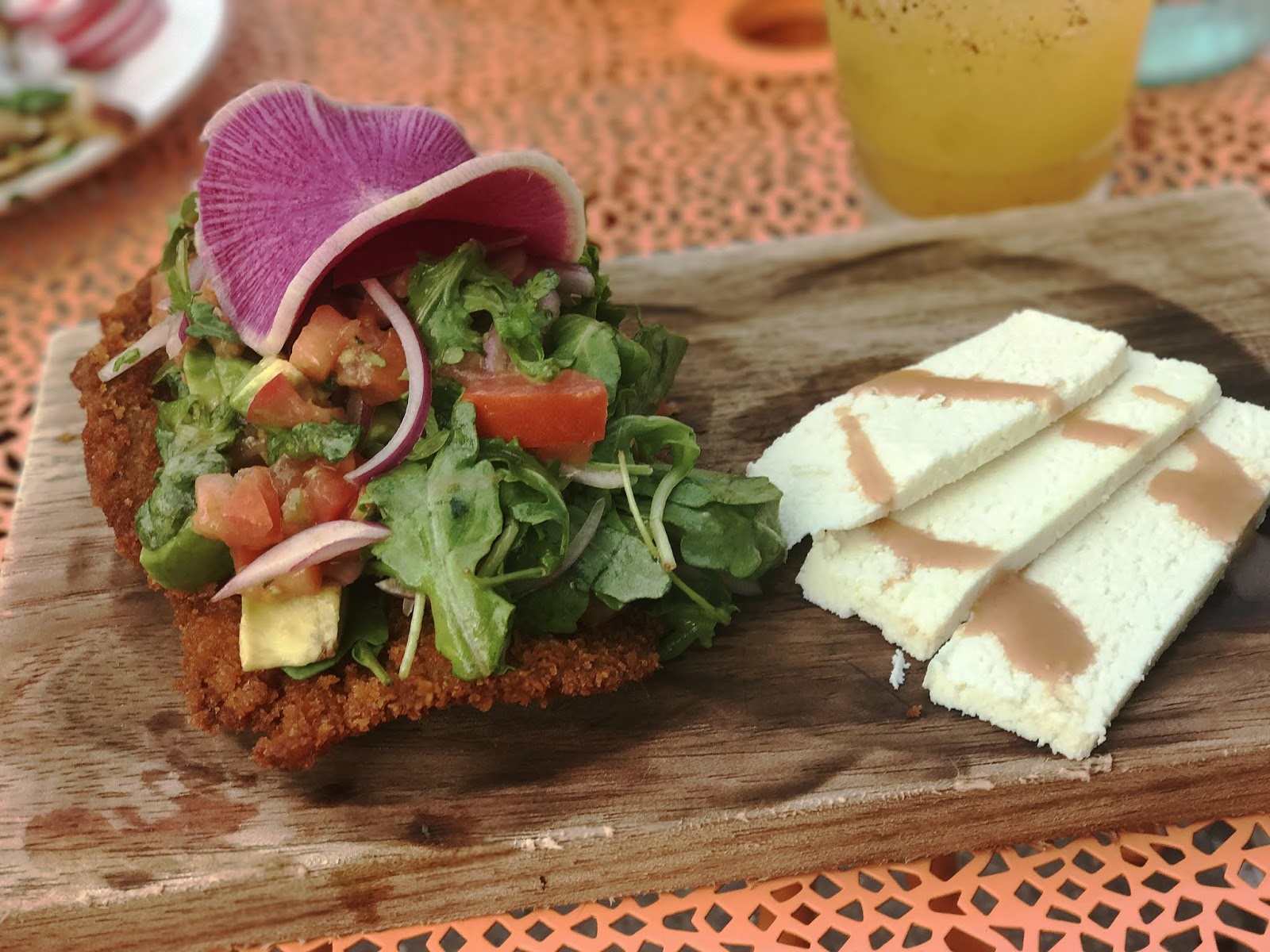 - My absolute favorite dish so far is the 'Milanesa' which is breaded beef or breaded chicken, homemade chipotle, papalo, quesillo, avocado, white onion. I get the breaded beef and it's always crispy outside and nice and tender inside. Cooked to perfection.