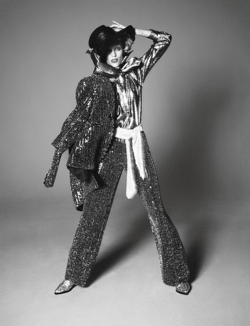 There is a huge nod to the 1980s in this editorial. You'll notice it through glitter, sequins, and color blocking. All trends which are still quite popular now. A lot of the glamorous pieces Rubik's wearing are from the Fall collection of designers such as Marc Jacobs, Saint Laurent, Dolce & Gabbana and more.