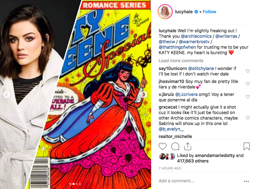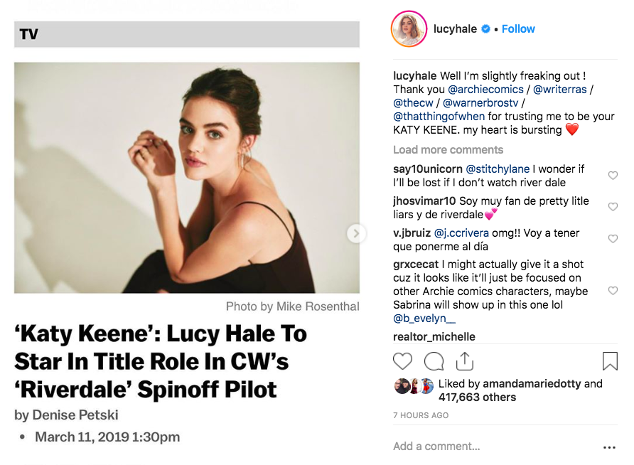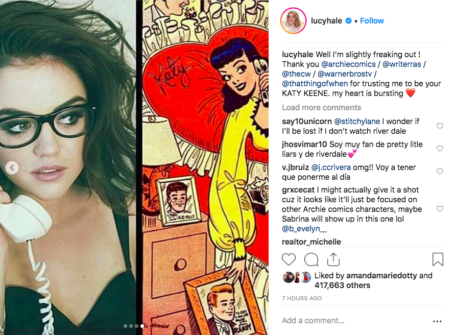 Lucy Hale Cast In Riverdale Spinoff as Katy Keene.