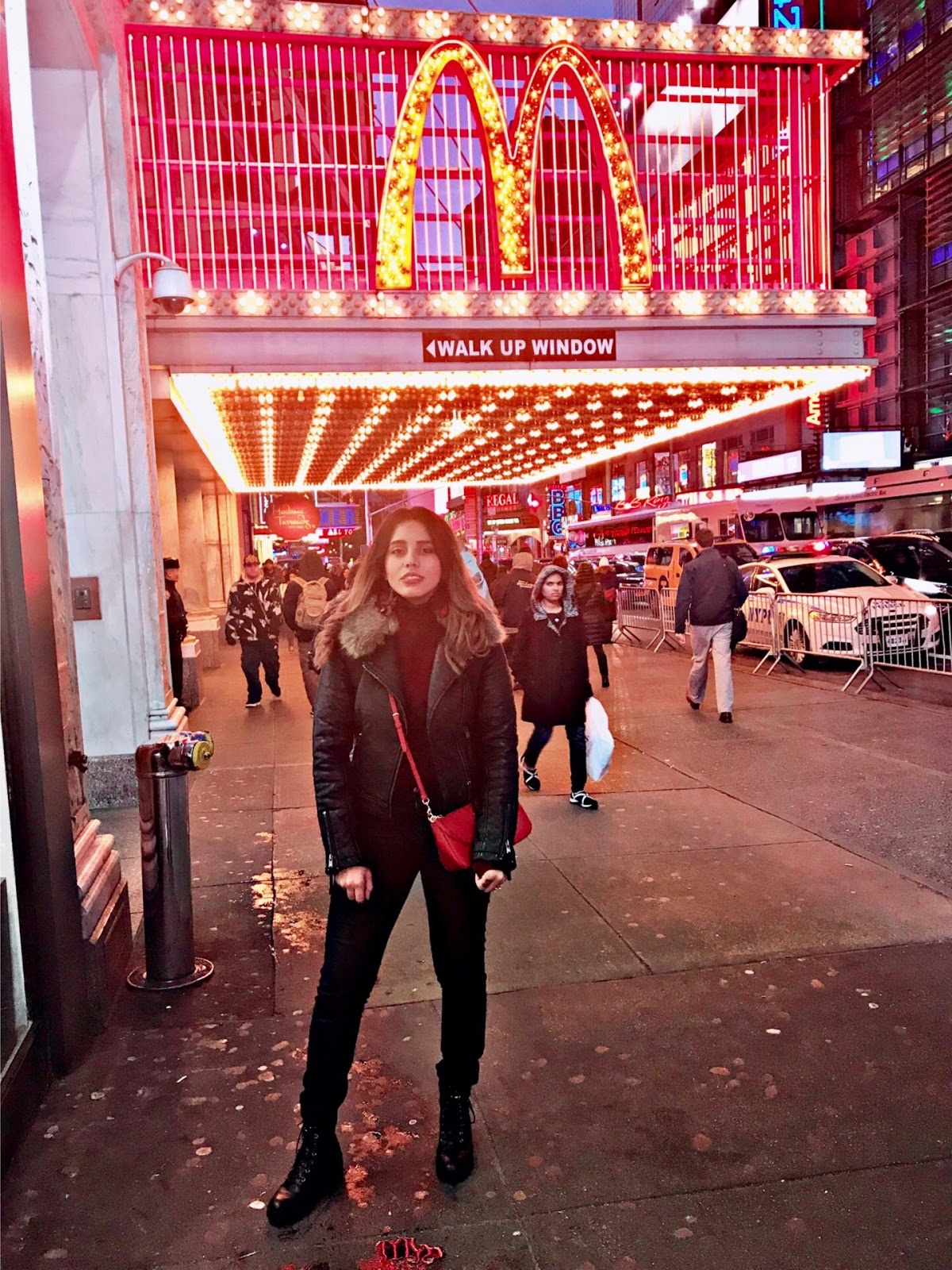 Do you guys like my outfit photo in front of this super pimpin' McDonald's? My friend thought it would be a fun place to take a little fashion photography. I'm sure you can find some sarcasm somewhere in that.  I've probably walked into this Mc Donalds in Times Square about 3 times in my life. It's pretty fancy compared to other ones I've been to in New York. I hear there are way nicer McDonald's all over the world... Why'd we get stuck with the mediocre ones? What's up with that?!