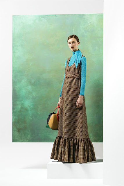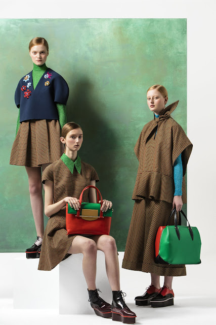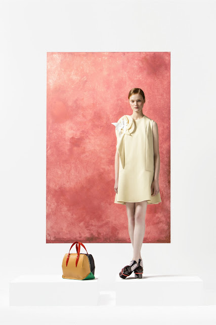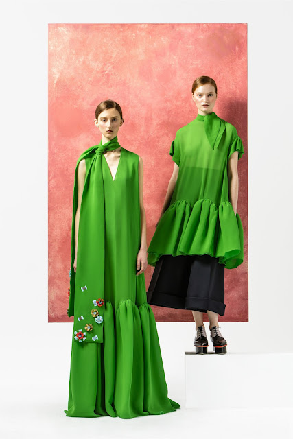 I believe what has me fully entranced with this collection besides the use of color (because you all know I'm a sucker for color) is the voluminous silhouettes. Some of these combinations you wouldn't usually think look good off the bat but they've been put together beautifully. Other glorious features seen in the collection are oversized prints and embellishments. There are handmade vinyl brooches on the collars and shoulders that make many of these pieces look even dreamier. It's such a nice compliment for the clothing.