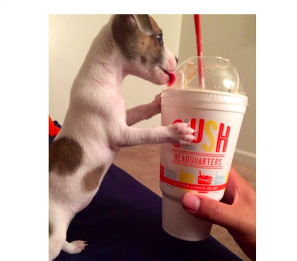 Little Nala trying to get into this Peanut Butter Oreo Cookie shake from Sonic. The cutest little chihuahua puppy. So adorable.