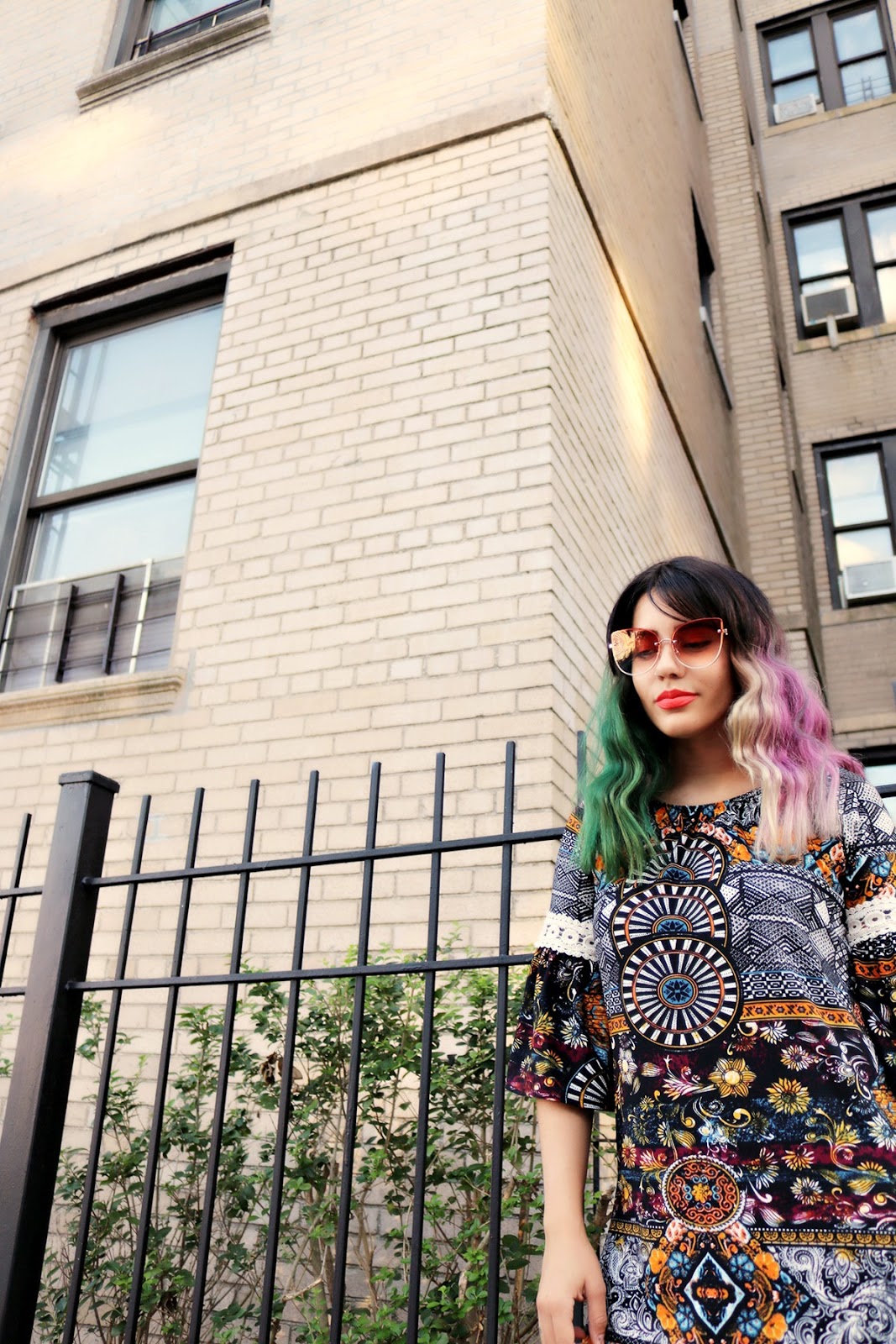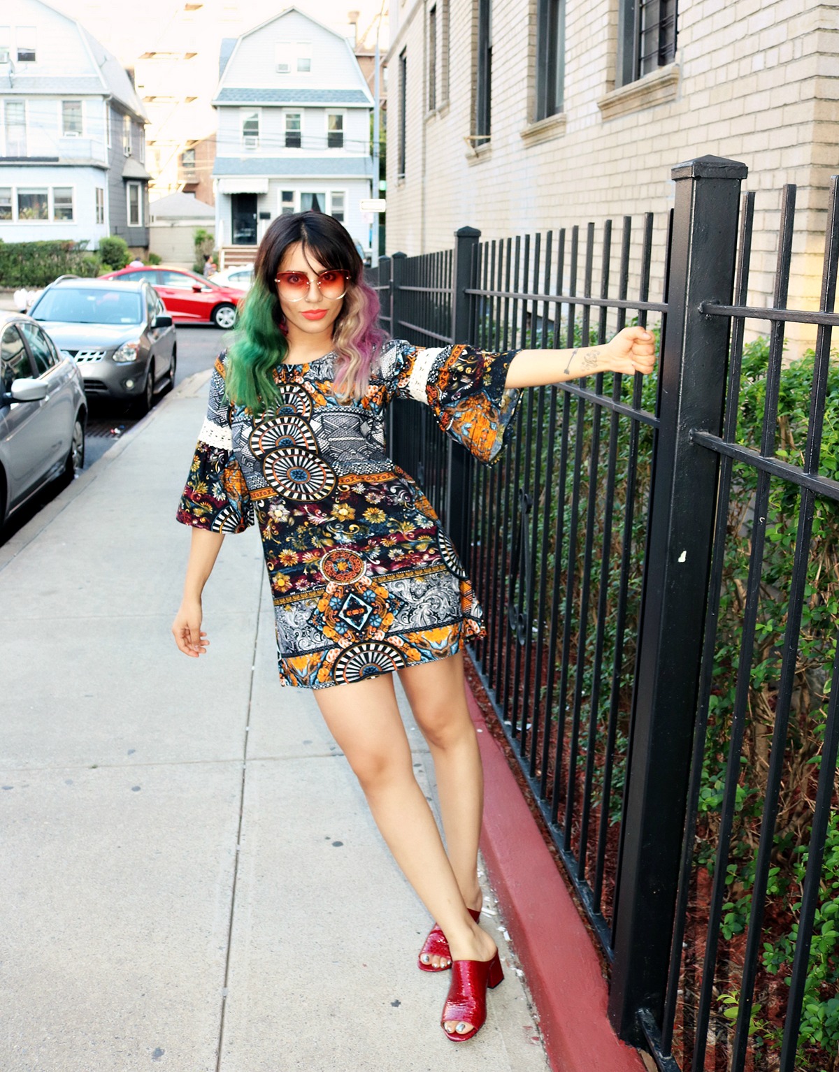 On a happier note, isn't this outfit cute? My friend took these photos about a month ago, and when I was looking at them today I thought, these colors are perfect for Fall! Green, orange, mustard yellow, burgundy, ugh! I can not wait to start wearing sweaters. This outfit has very much a hippy girl vibe to it. The shoes are from Donald J Pliner and the dress was a gift from my mother, I believe she picked it up a a random boutique (not sure the name). The awesome sunglasses are from ALDO.